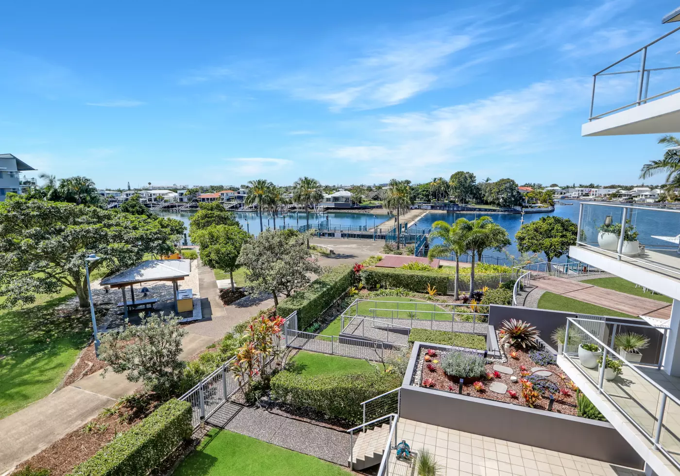 Residents of Island Quays enjoy resort-style living with beautifully landscaped grounds, a large pool with lap lane and spa, BBQ area, tennis court, car wash bay, CCTV, and private boat mooring jetty.