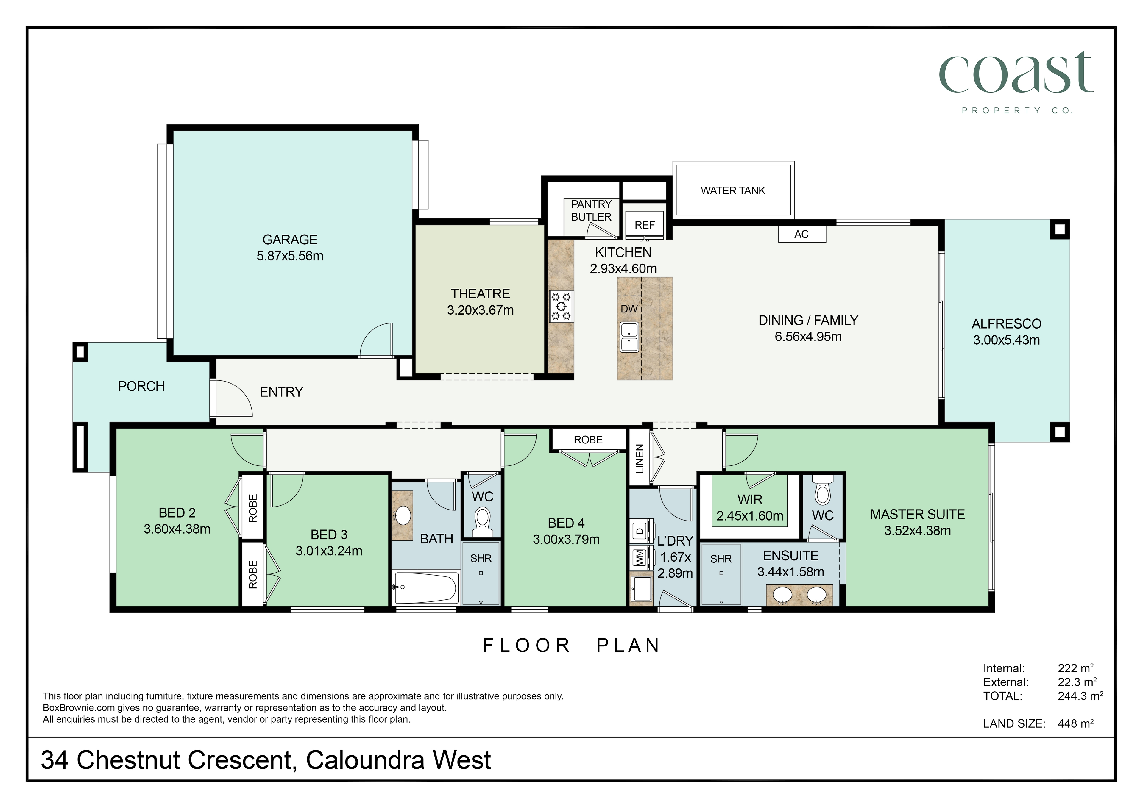 Welcome to 34 Chestnut Crescent, Caloundra West — a spacious and well-appointed Plantation Homes residence combining modern comfort, style, and generous living. Set on a 448sqm block in a quiet, family-friendly street, this 244sqm home impresses with high ceilings, light-filled interiors, and a wonderful sense of space throughout.